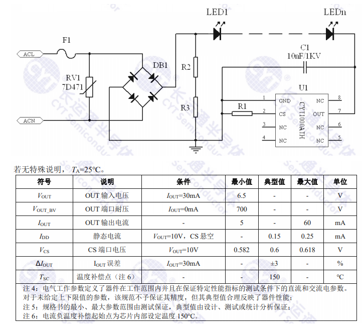 CYT1000ATH is a linear constant current IC with adjustable output current, high constant current precision, simple application scheme, few peripheral components in the system structure, over-temperature protection function, more safety and reliability.