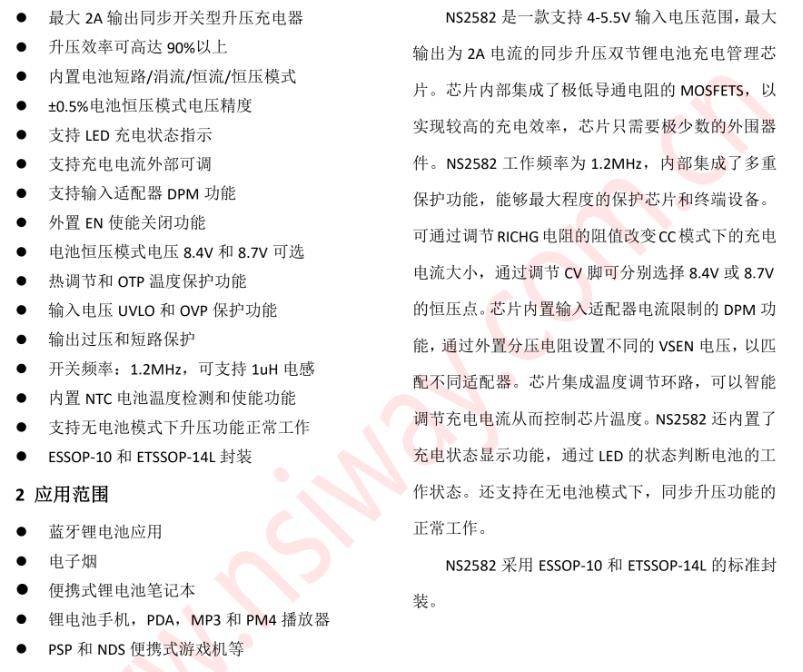 首頁 >> 產(chǎn)品中心 >> NS納芯威 >> 鋰電池充電芯片
