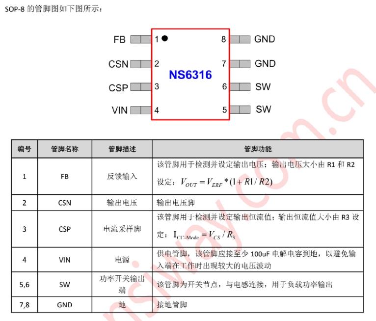 NS6316采用SOP8的標(biāo)準(zhǔn)封裝。