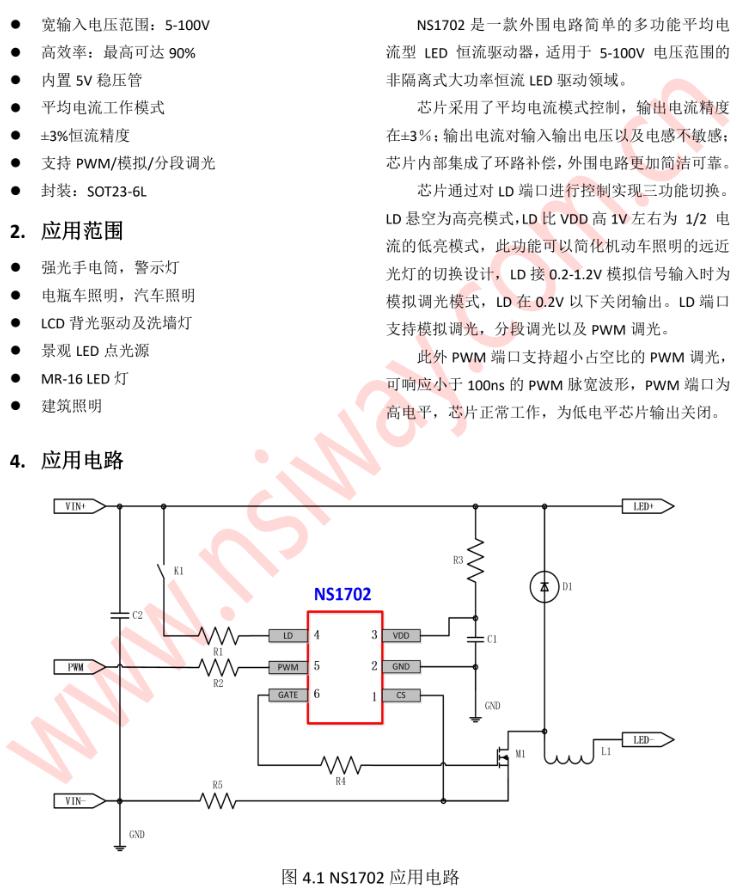 NS1702 多功能平均電流型 LED 恒流驅(qū)動器 100V