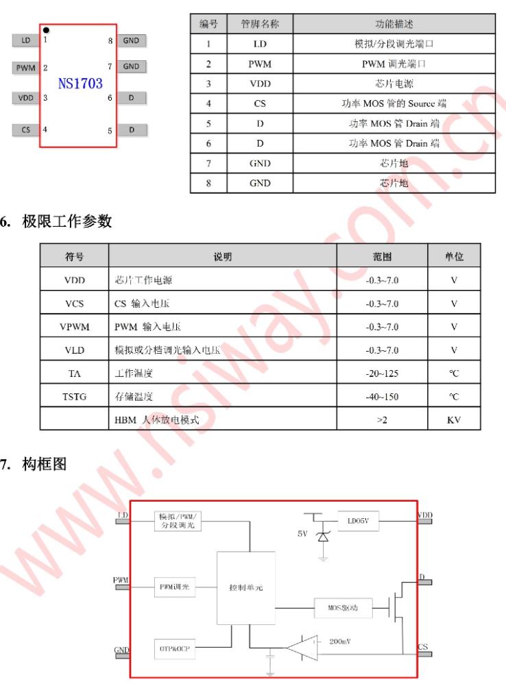 NS1703 1.5A 100V輸出多功能平均電流型LED恒流驅動器