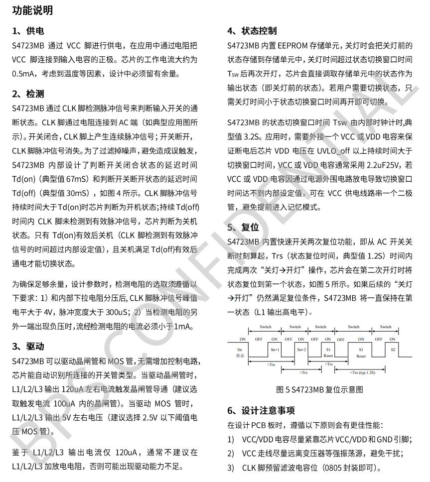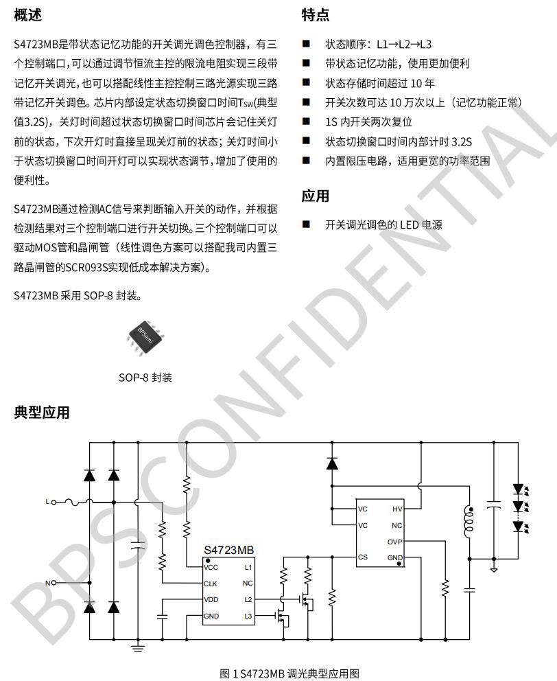 | S4723MB | SOP8 | 外置MOS管/SCR | / | 1S開關2次 | A->B->C |