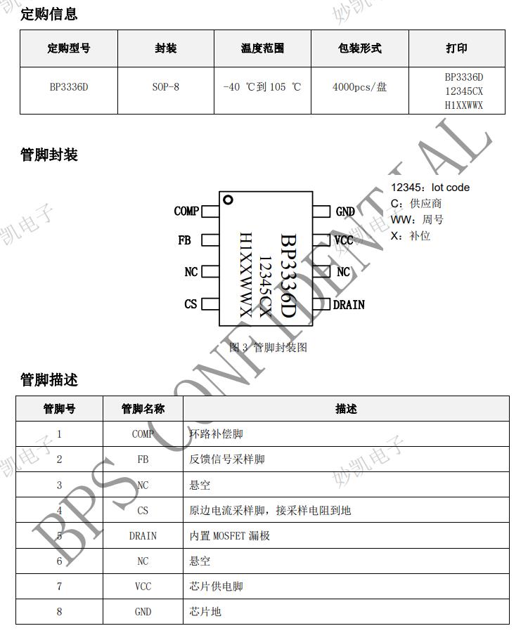 | BP3336D | SOP8 | 2.15Ω | 650V | Y | OTP/OVP | <13W | <18W |