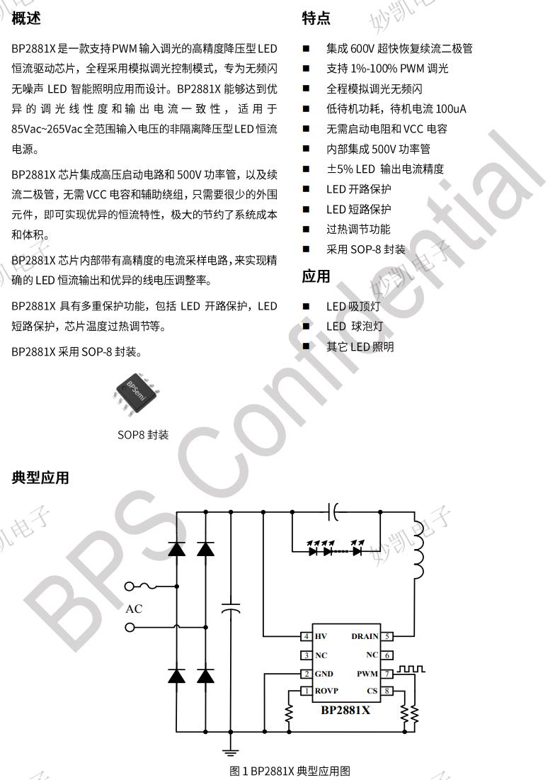 BP2881D是一款支持PWM輸入調(diào)光的高精度降壓型LED恒流驅(qū)動(dòng)芯片,全程采用模擬調(diào)光控制模式,專(zhuān)為無(wú)頻閃無(wú)噪聲LED智能照明應(yīng)用而設(shè)計(jì)。