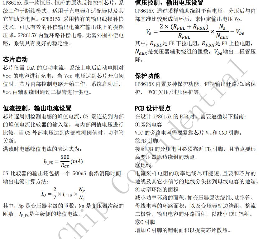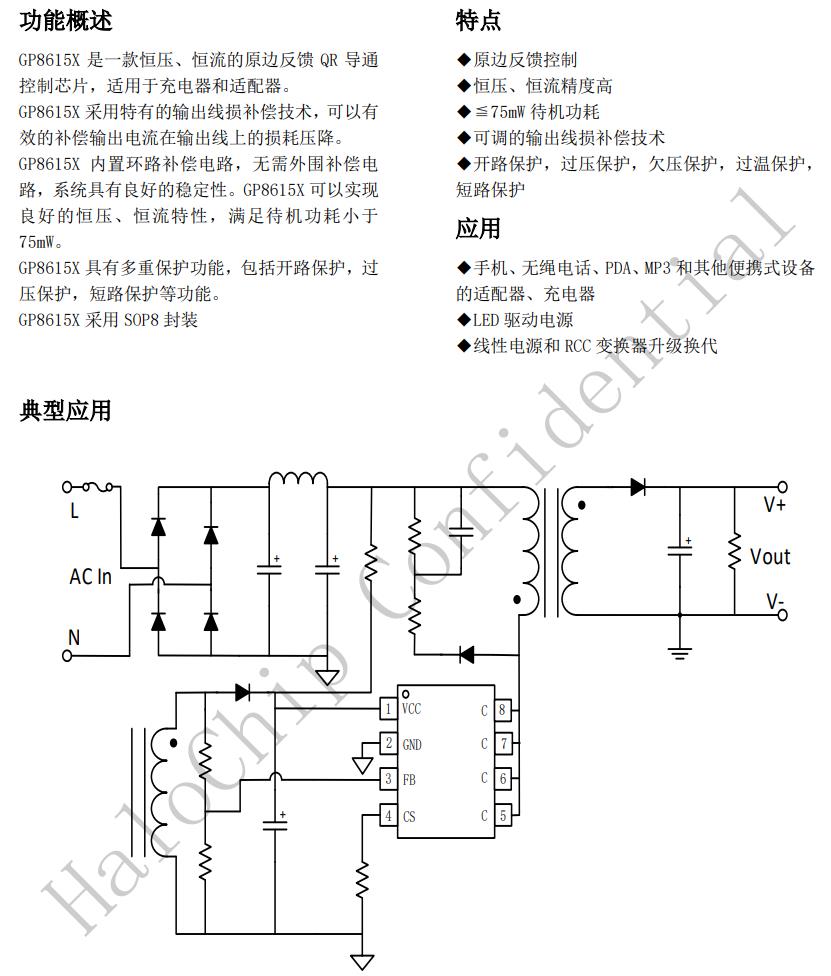 GP8615X具有多重保護(hù)功能,包括開(kāi)路保護(hù),過(guò)壓保護(hù),短路保護(hù)等功能。