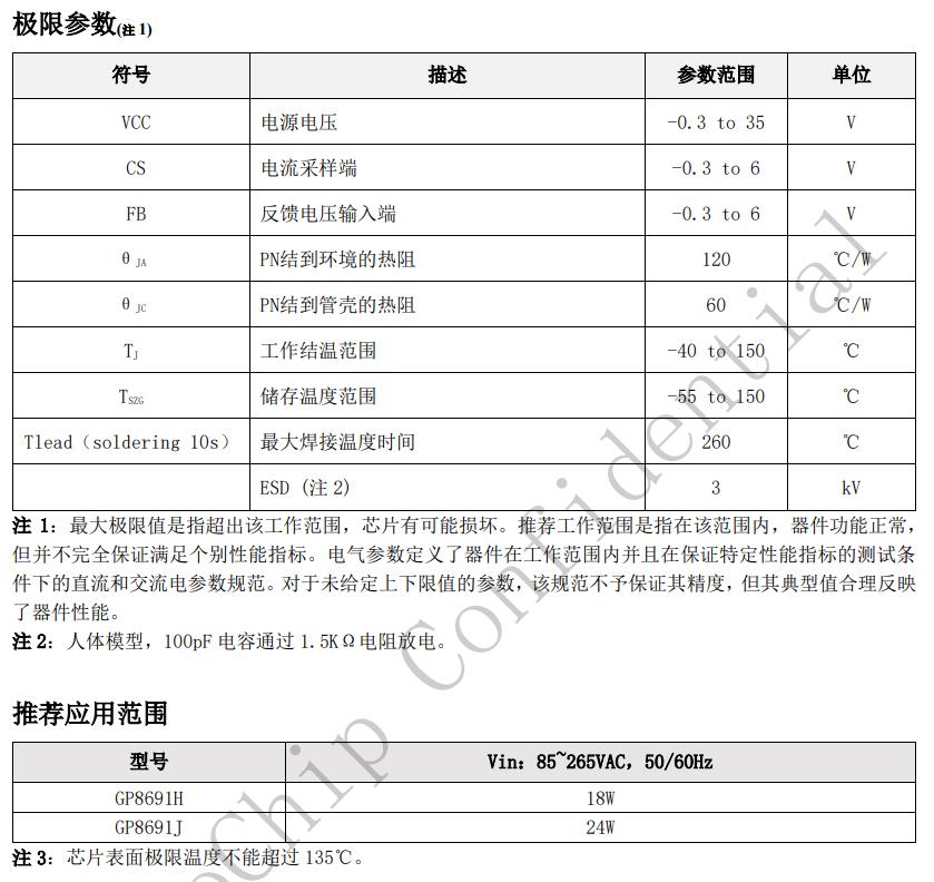 初次級高壓測試芯片高可靠性原邊反饋控制恒壓、恒流精度高≦75mW待機功耗可調的輸出線損補償技術FB開路保護,過壓保護,欠壓保護,過溫保護,FB到地短路保護,次級繞組短路保護,次級肖特基短路反接保護,輸出過欠壓保護。