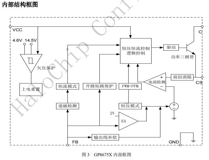GP8675X內(nèi)置環(huán)路補(bǔ)償電路,無需外圍補(bǔ)償電路,系統(tǒng)具有良好的穩(wěn)定性。GP8675X可以實現(xiàn)良好的恒壓、恒流特性,滿足待機(jī)功耗小于75mW。