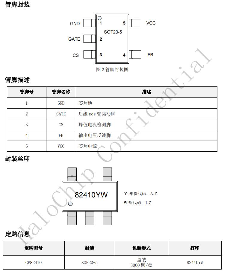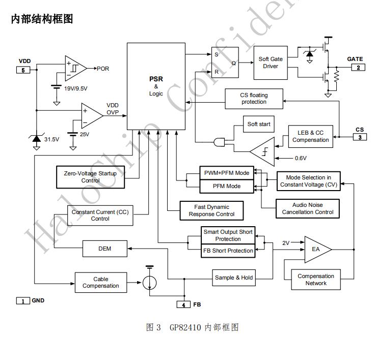 GP82410提供軟啟動,音頻噪音消除技術(shù)以及多種保護(hù)功能,諸如自動重啟,逐周期電流限制,VCC過壓欠壓鉗位保護(hù),管腳開路短路保護(hù),驅(qū)動鉗位保護(hù)等。