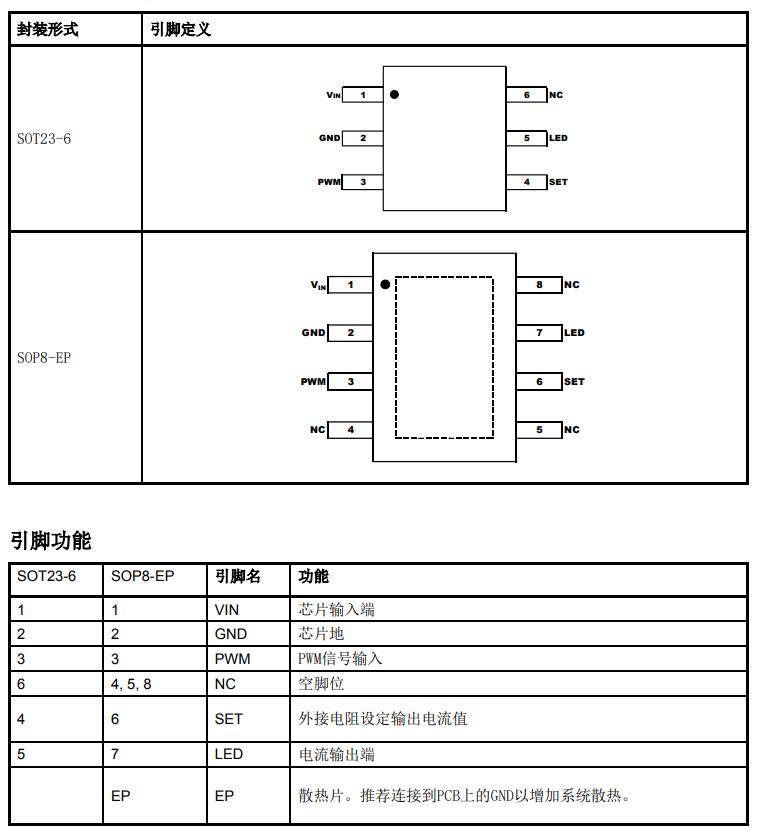 15mA-350mA電流輸出, 通過外部電阻可設定電流值
