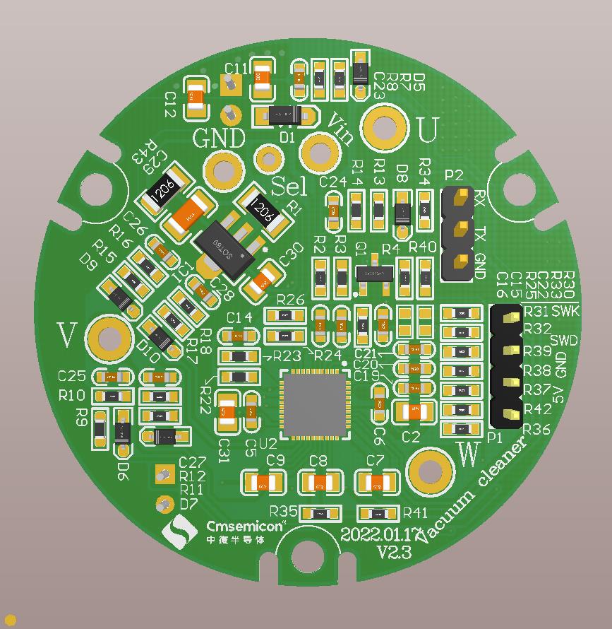 CMS32M5533 是 ARM-Cortex M0 內(nèi)核, 同時內(nèi)置 90V 三相半橋驅(qū)動模塊芯片。MCU負責(zé)整個系統(tǒng)的信號采集, 數(shù)據(jù)處理, 驅(qū)動輸出, 邏輯功能控制。