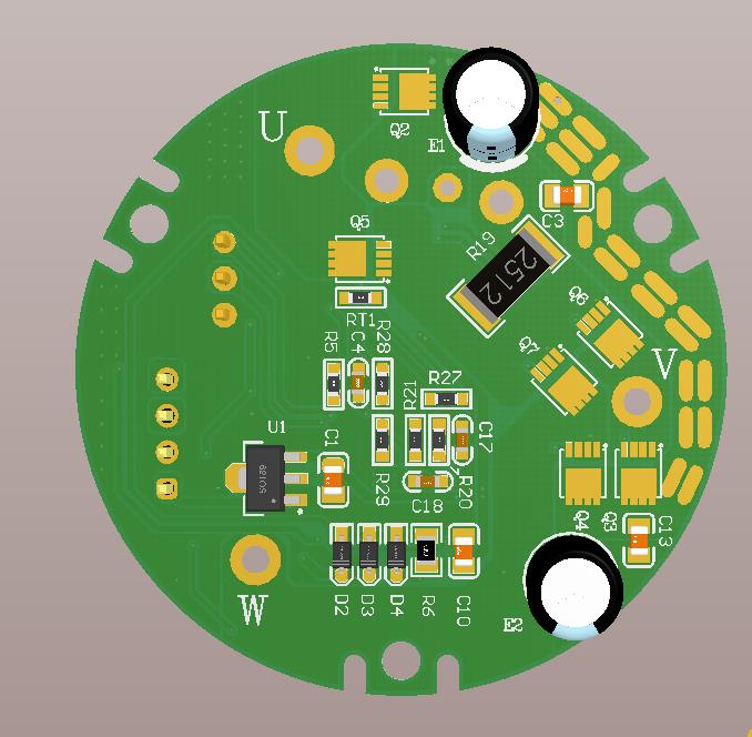 運放電流采樣按差分走線,從 Rsense 焊盤中間出線,走線遠離干擾源。 運放基準地應(yīng)與 MCU 為同一參考地,反電動勢采樣地與 MCU 為同一參考地。 敏感弱電信號線與強電或高頻信號線保持一定距離,例如: U, V, W,相線禁止從芯片底部走線。 輔助電源從輸入 Bulk Capacitor 出線。