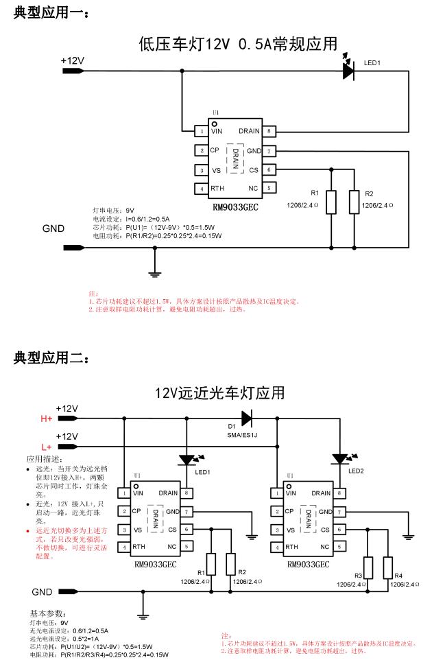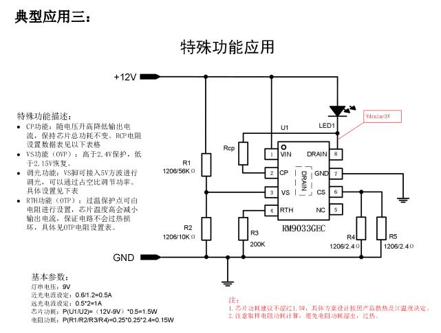 RM9033GEC可以通過(guò)外部電阻精 確設(shè)定LED電流,且輸出電流恒定在 設(shè)定值。芯片具有線電壓補(bǔ)償功能,當(dāng) 輸入電壓過(guò)高時(shí),自動(dòng)降低LED燈串電 流,保證輸入功率基本不變。