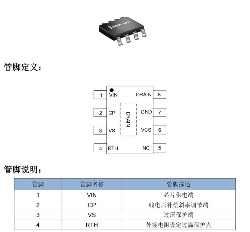大功率多芯片并聯(lián)應(yīng)用 芯片具有恒功率功能 LED電流可外部設(shè)定 芯片具有過(guò)溫保護(hù)能力 采用ESOP8封裝